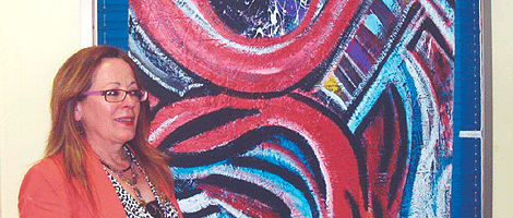 La pintora afiliada Pilar Lsierra junto a uno de sus cuadros