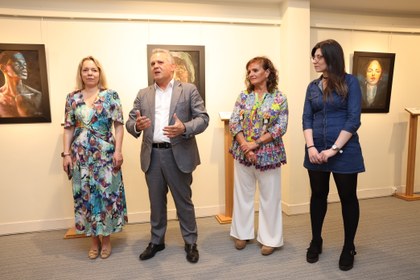 Ángel Luis Gómez, director de Promoción Sociocultural, Artística y Deportiva de la ONCE, Ana Díaz Alonso, consejera general de la ONCE, Fran Maldonado, coordinador del Museo Tiflológico, la propia Lola Raya y Mireia Rodríguez, técnica del Museo Tiflológico, inauguraron esta exposición en la tarde de ayer.